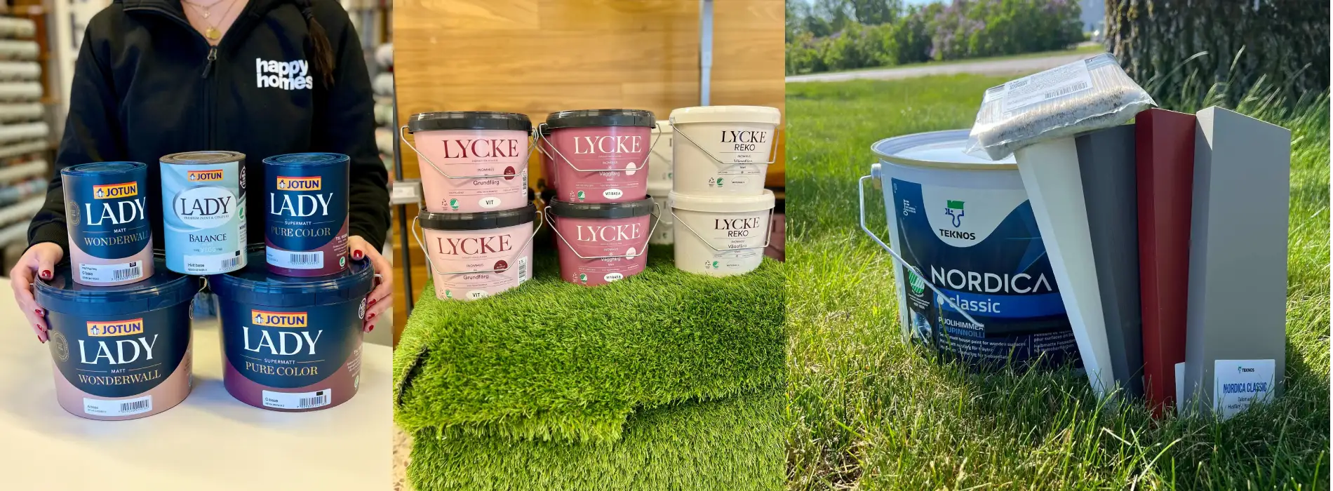 Produkter från kända tillverkare som Teknos, QPT, Tapetterminalen mfl.